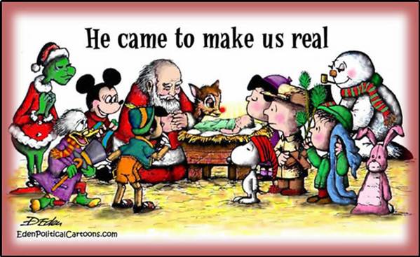 You know, this story gives me a chance to say this: Christmas is about something very real. It isn’t actually about Santa, reindeer, sleigh bells, or Christmas critters – fun as those games may be for children. Christmas is about the Lord Jesus Christ, the One who came to make us real.